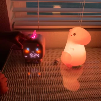 this alarm clock has been a great purchase. the dinosaur design is a hit with my child and the voice control feature makes it easy for them to use. the night light is soft and calming, perfect for helping them fall asleep. the alarm is simple to set and has a pleasant sound that wakes my child without startling them. it’s also very well-made and durable. mornings have become much smoother since we started using this clock. highly recommend to other parents looking for a fun and practical solution.
